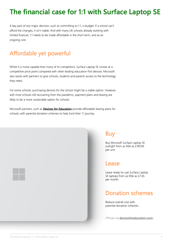 Microsoft UK’s partner network features vendors that offer financial solutions, such as payment plans for schools, finance for parents, and donations from business to manage this. Therefore, the opportunity seemed to be through the Microsoft Education partners.